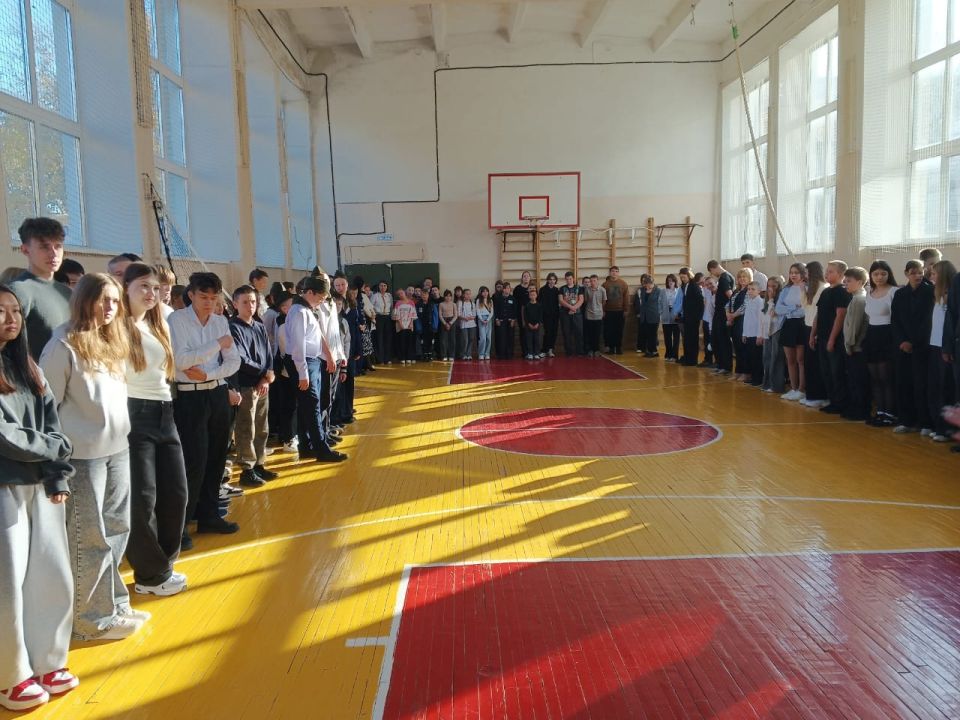 Встреча проходила в школе № 4 села Монастырище Черниговского района на торжественной линейке, посвященной окончанию первой учебной четверти.