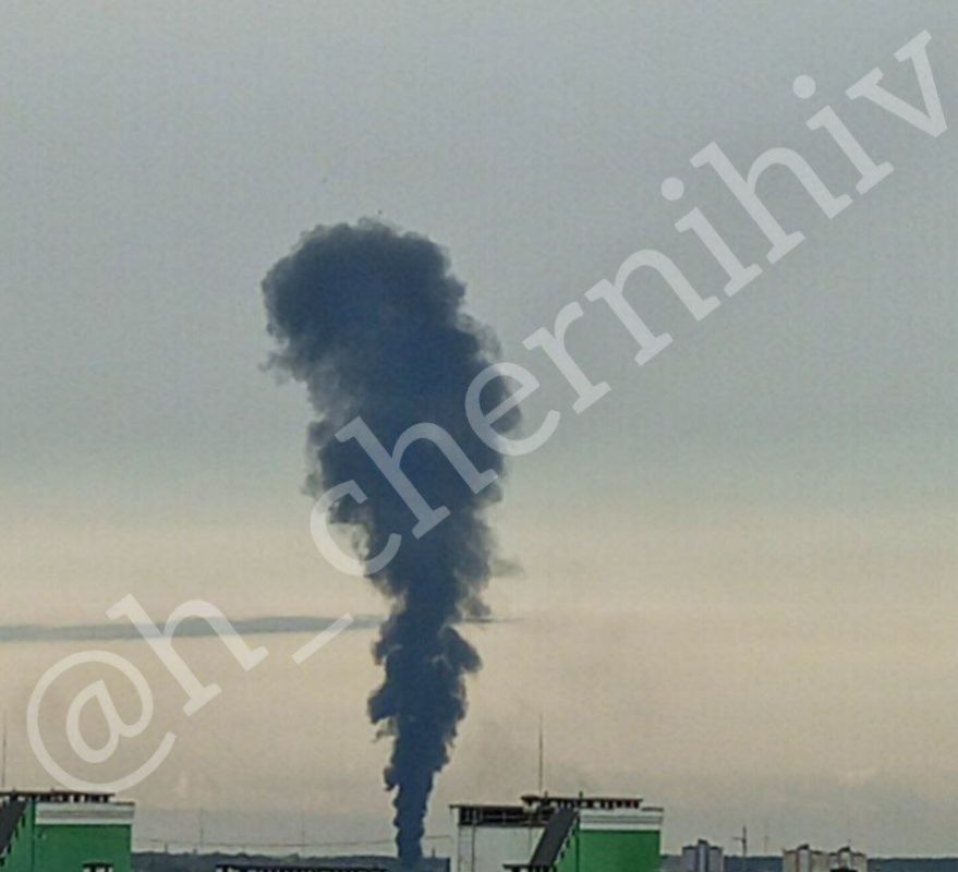 Столб дыма над Черниговым. Снова поражен объект инфраструктуры. Гауляйтер Чернигова снова завел рулады про "мирные объекты". Также идет налет "Гераней" на Сумы.
