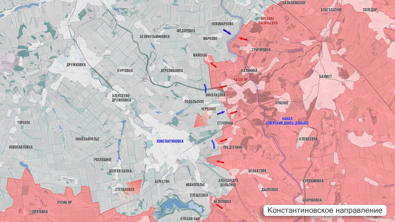 На Константиновском направлении продолжаются бои, новостей об изменениях сегодня нет.