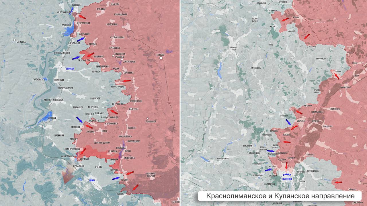 На Купянском направлении ВСУ контрактуют в районе Кондрашовки, пытаясь с фланга оказать давление на наши силы, штурмующие Купянск. Однако ВС РФ, установив контроль над ж/д станцией Эстакадная, продолжают продвижение. Из северной части города по ВСУ работают миномёты, малые штурмовые группы ведут зачистку. На севере направления, как сообщают с мест, «Искандер» уничтожил пусковую установку РСЗО HIMARS в районе Среднего Бурлука.