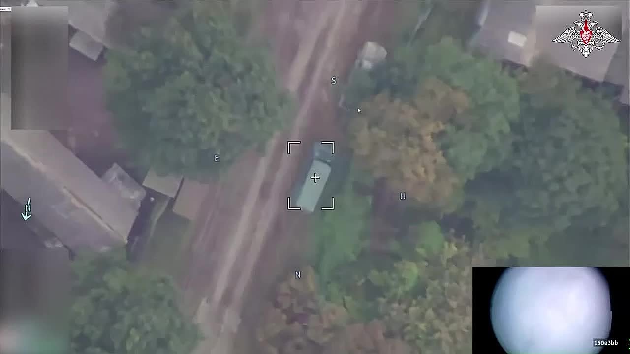 ВС РФ "Геранями" поразили пункт дислокации ВСУ в районе н. п. Поповка в Черниговской области.Видео: Минобороны России/ТАСС