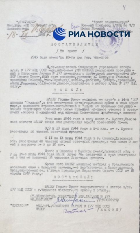 В этих бумагах - преступления бывшего ефрейтора 1-й санитарной роты 14-й дивизии СС "Галичина" Германа Эрнста Шапера в Львовской области.