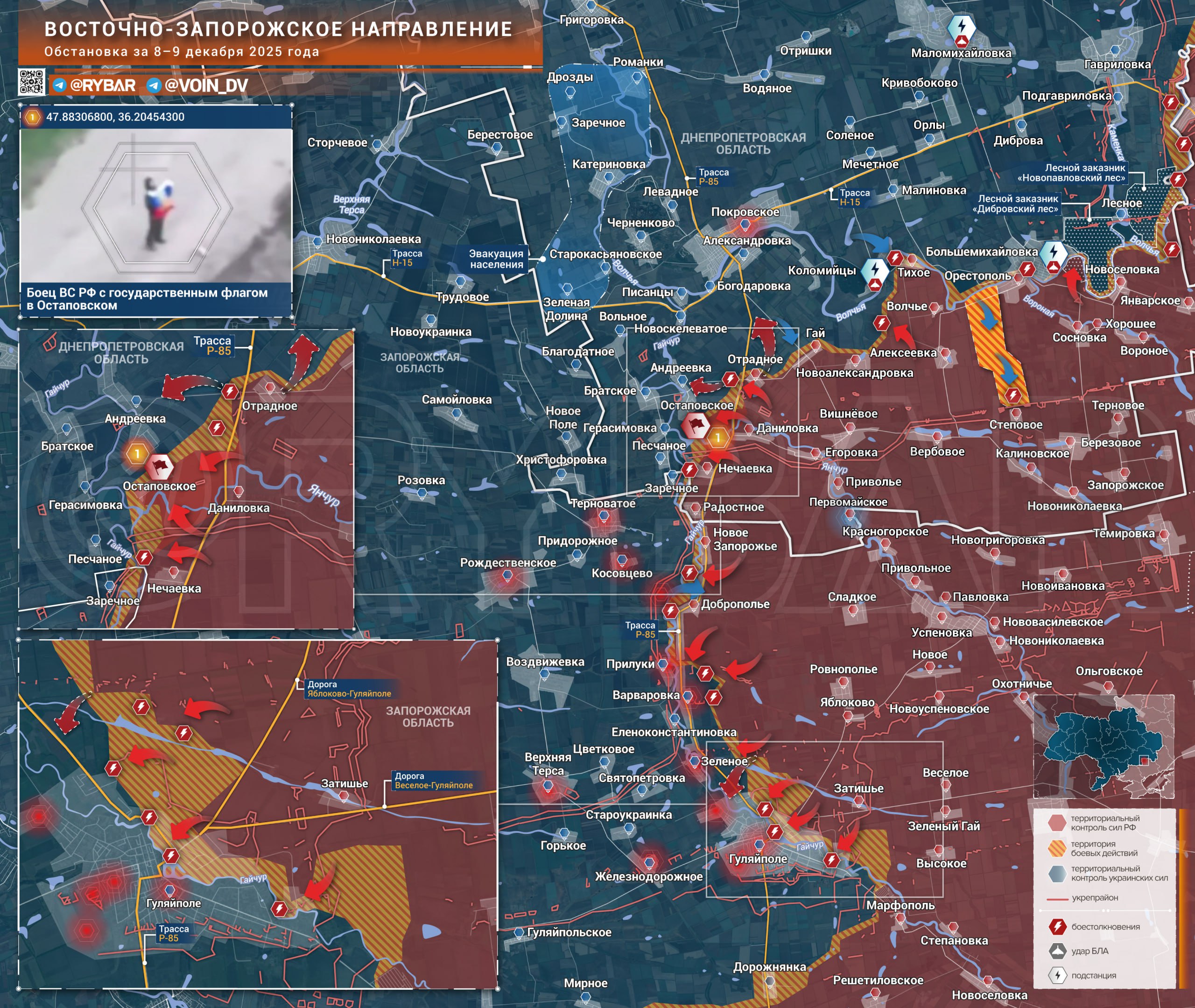 На Восточно-Запорожском направлении ВС РФ освободили Остаповское, а ВСУ проводят огневые налеты на позиции ВС РФ у Степового.
