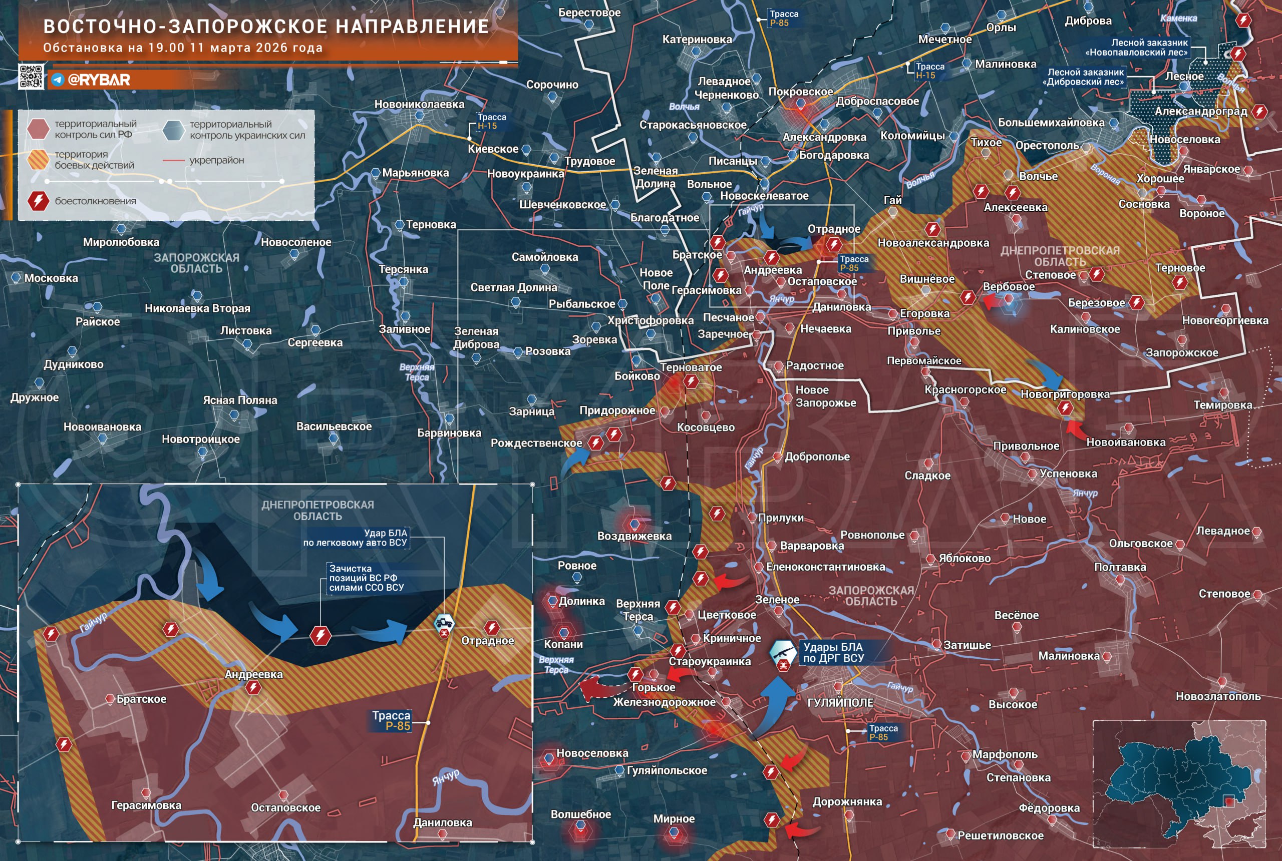 К северу от Гая противник предпринял достаточно масштабную атаку, которая была пресечена действиями дроноводов и артиллеристов группировки войск «Восток». При этом в окрестностях Вишневого по-прежнему сохраняется активность ранее заброшенных групп противника.