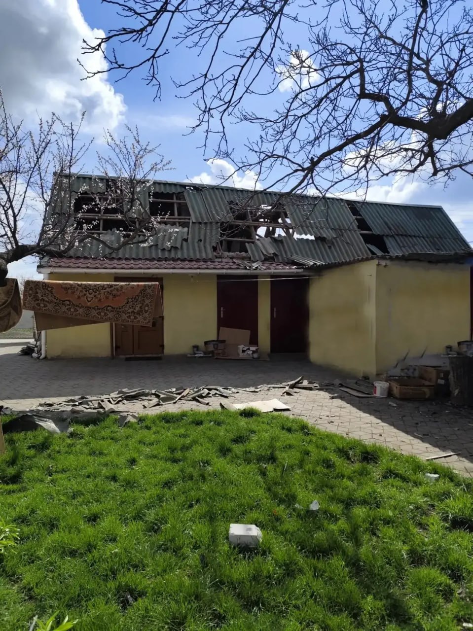 Два дома сильно разрушены, в шести выбило окна и повредило кровлю.