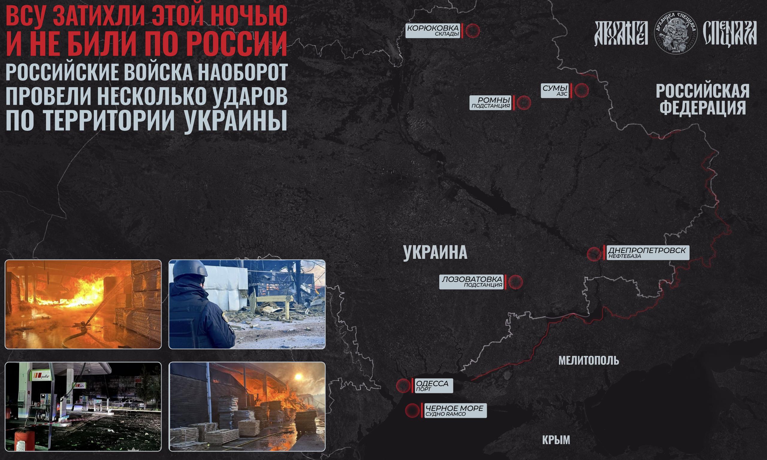 Пока украинская сторона восполняет запасы после массированного налета в свыше 300 беспилотников, наши войска ударили украинской территории.
