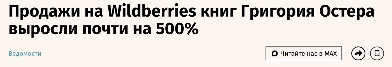 Продажи на Wildberries книг писателя Григория Остера с 21 по 26 апреля увеличились почти на 500% в натуральном выражении по сравнению с таким же периодом 2025 г. И на 220% относительно начала месяца. По данным площадки, наибольшей популярностью пользуются различные издания «Вредных советов».